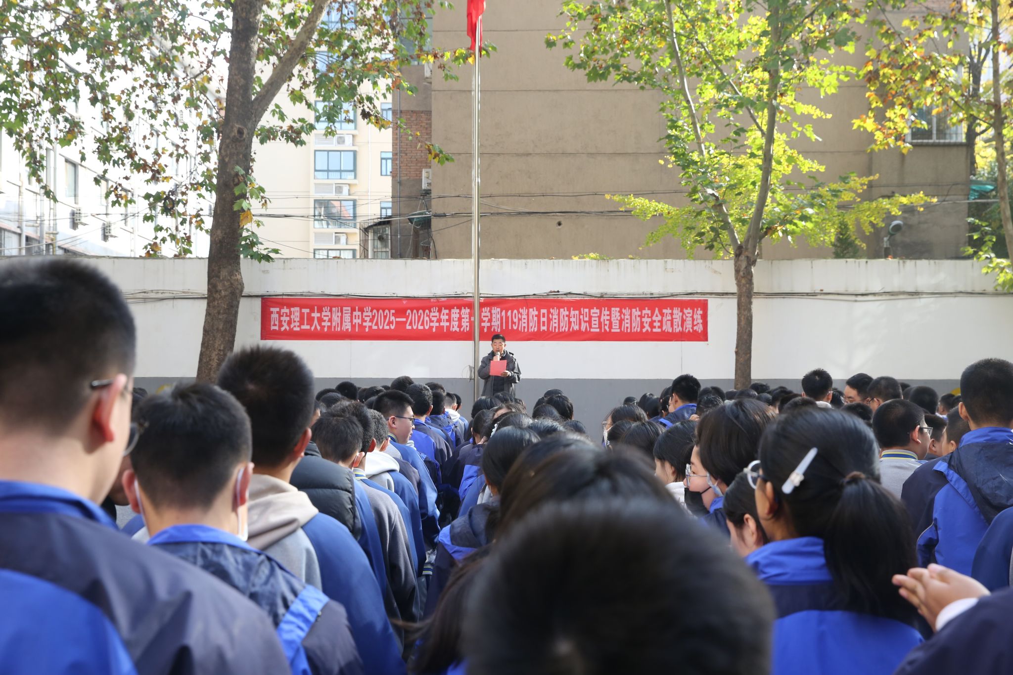 2025年11月11日,西安理工大学附属中学组织开展2025—2026学年度第一学期消防知识宣传暨消防安全疏散演练。活动紧扣第34个全国消防日“全民消防、生命至上——安全用火用电”主题,旨在强化师生安全意识,提升应急避险与自救互救能力,筑牢校园安全防线。急促的消防警报声划破校园宁静,演练正式启动。班主任迅速指引学生用湿毛巾捂住口鼻,弯腰低姿沿既定路线撤离,楼道值守教职工有序疏导,全校师生默契配合、行动迅速,仅用1...