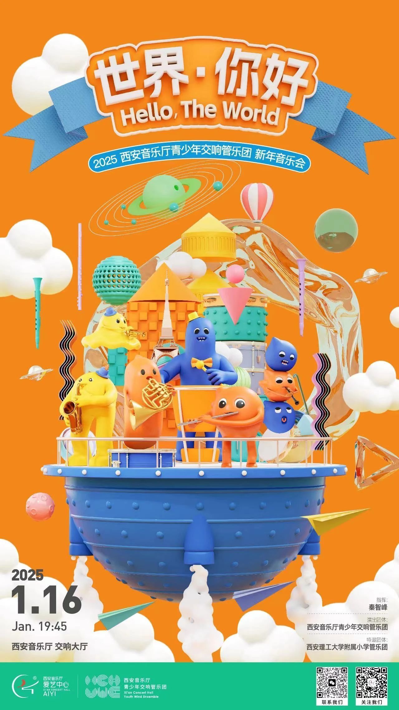 2025年1月16日,“世界·你好”音乐厅里的音乐课暨西安音乐厅青少年交响管乐团2025新年音乐会,由西安音乐厅青少年交响管乐团、XSO西安交响乐团铜管、木管、打击乐声部众位艺术家以及特邀团体西安理工大学附属小学管乐团共同呈现,合力奉献了一场以多元文化为主线,充满活力的精彩音乐盛宴。