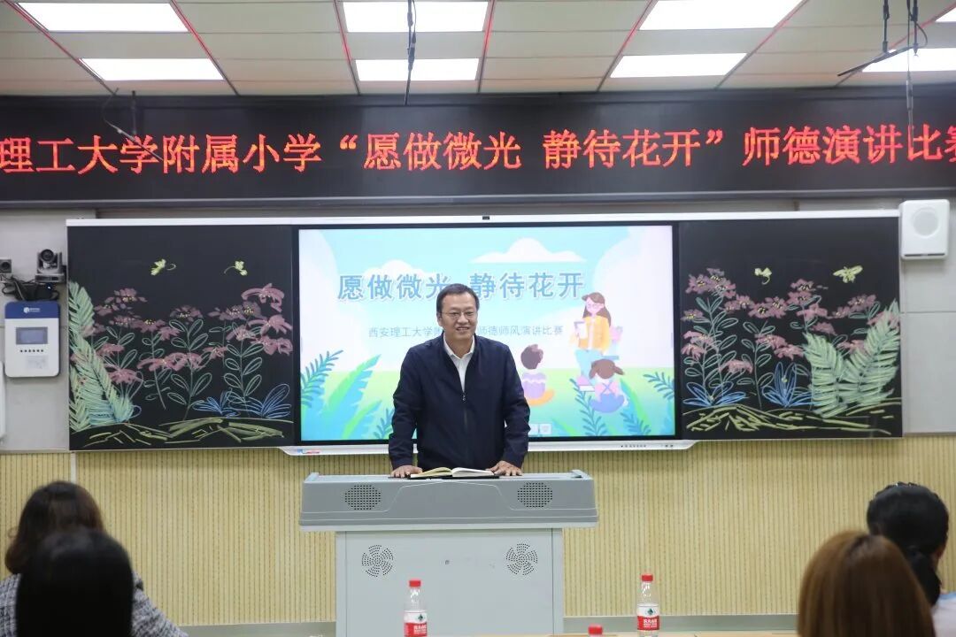 值此中华人民共和国成立76周年国庆华诞来临之际,为厚植师德根基、凝聚育人初心,9月29日,西安理工大学附属小学以“愿做微光,静待花开”为主题,举办2025年度秋季学期师德师风演讲比赛。西安理工大学子弟学校党总支书记袁建、校长胡贻聪,西安理工大学附属小学校长曹红侠、副校长张敏及学校中层领导干部出席活动并担任比赛评委,全校教师齐聚一堂,共赴这场以“师德”为名的教育盛会,用教育故事传递温度,以坚守诠释育人初心。