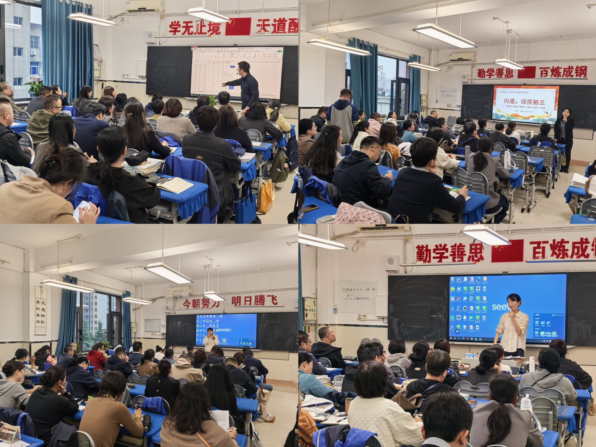 各班班主任以学业复盘为切入点,结合班级整体表现,对标中考总分构成、科目分值及不同层次高中录取的得分率标准,清晰阐释体育中考在总分中的重要性,同时简要说明学生单科进退步情况,让家长快速把握孩子学业定位,明确备考侧重点。