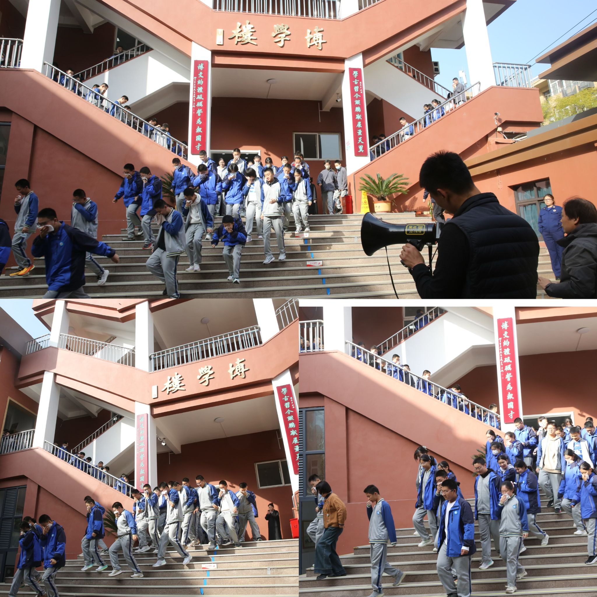 急促的消防警报声划破校园宁静,演练正式启动。班主任迅速指引学生用湿毛巾捂住口鼻,弯腰低姿沿既定路线撤离,楼道值守教职工有序疏导,全校师生默契配合、行动迅速,仅用1分54秒便全部安全集结至操场,全程秩序井然,充分体现了同学们良好的安全意识和应急逃生能力。