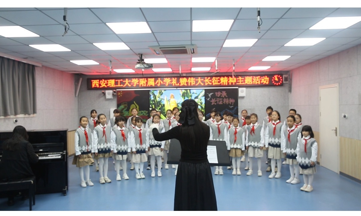 11月12日,西安理工大学附属小学二楼录播教室内红歌嘹亮、暖意融融,学校合唱团以一场饱含深情的合唱表演,举办“礼赞伟大长征精神”主题活动,积极响应全省“抗战歌曲、长征组歌大家唱”青少年主题展演号召。