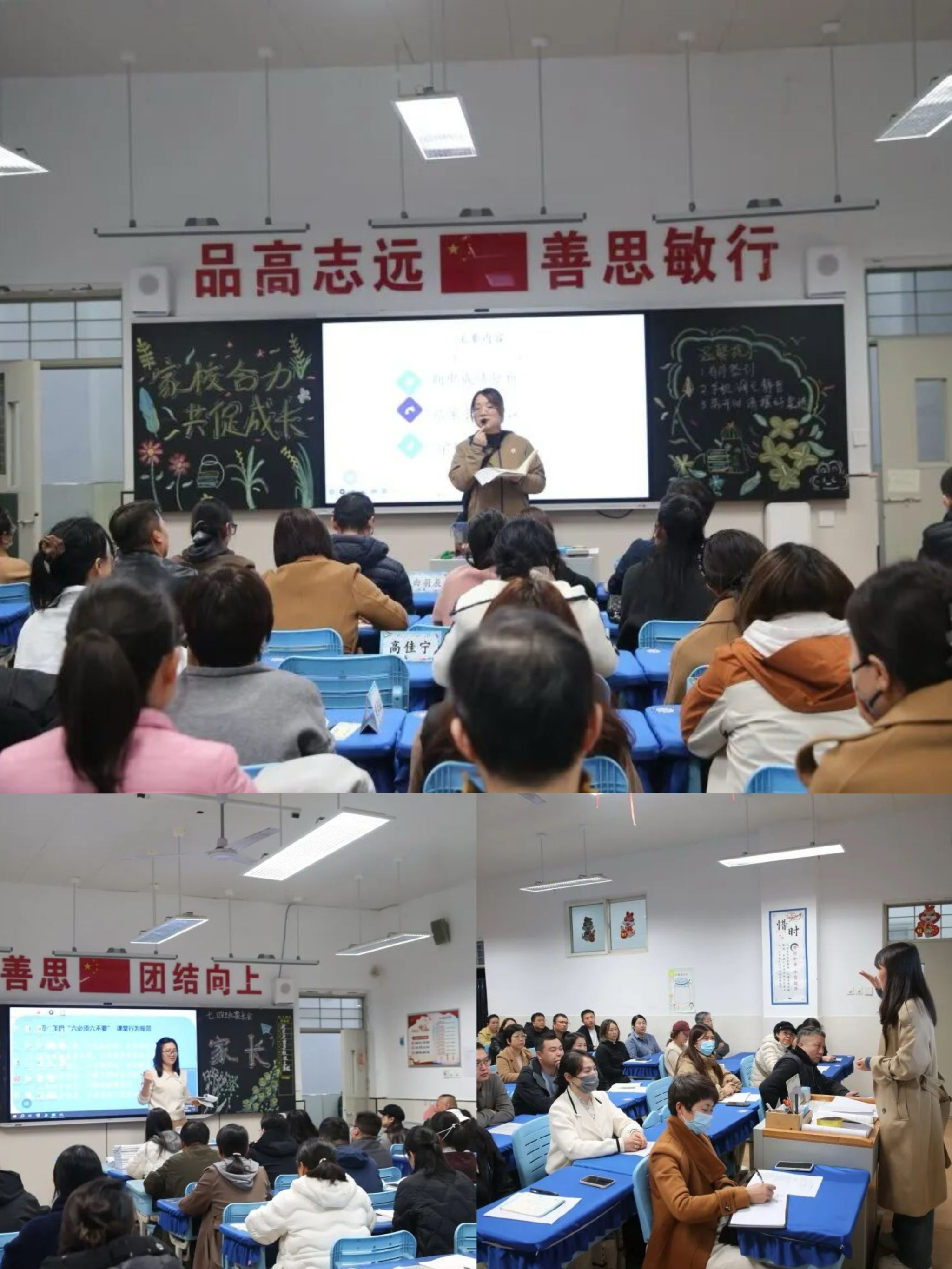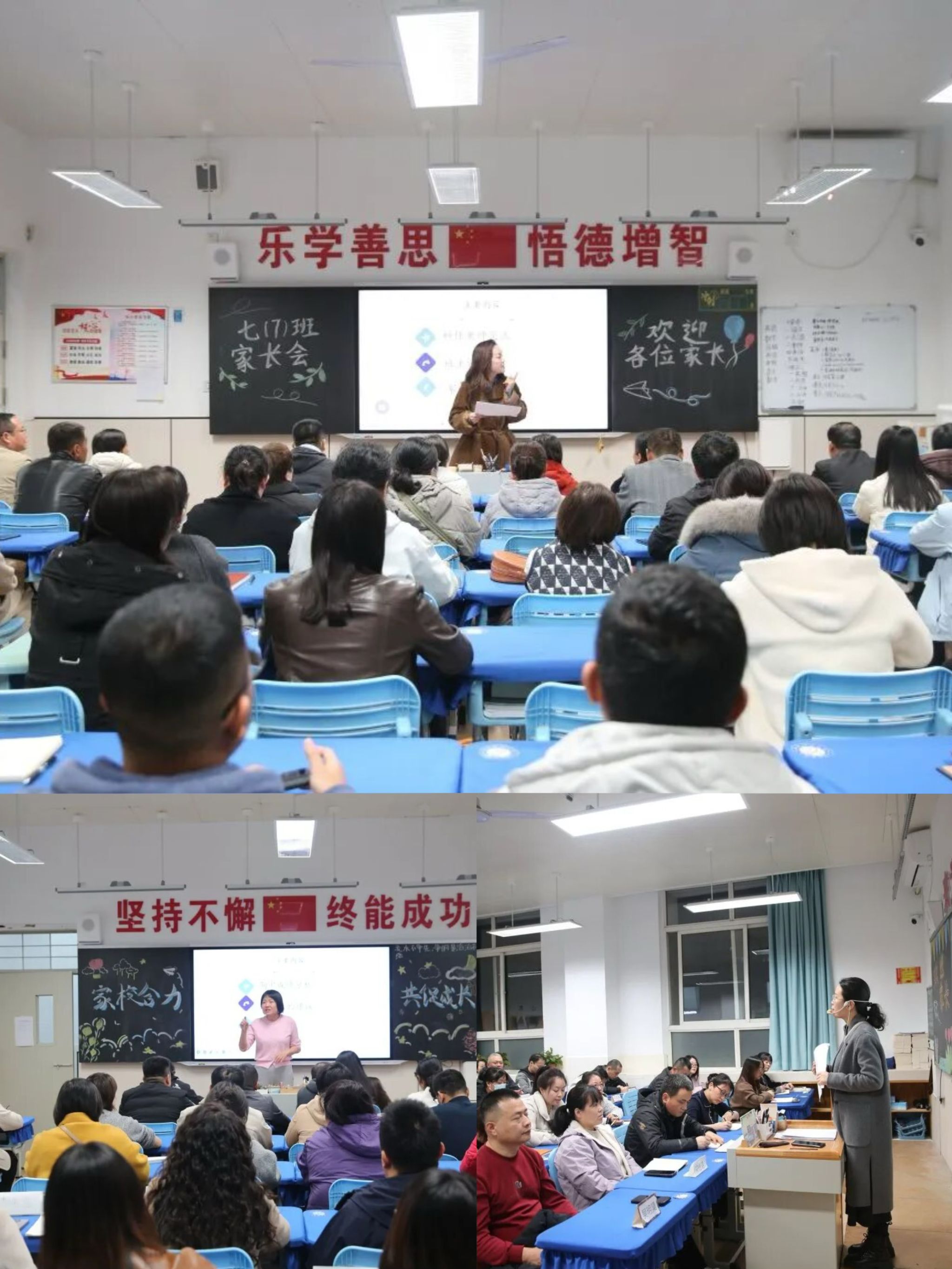 七年级紧扣“家校合力,共促成长”主题,各科教师结合学业数据精准分析学情,分享学科学习方法与提升路径;学生代表分享新七年级适应感悟与学习“小窍门”,字里行间里都是对学校的热爱与满满的“安全感”;家长代表分享陪伴感悟,传递与孩子共成长的真实心得,感叹孩子半学期来的成长变化;班主任聚焦新生心理适应与习惯养成,与家长深入沟通,凝聚携手育人的共识。