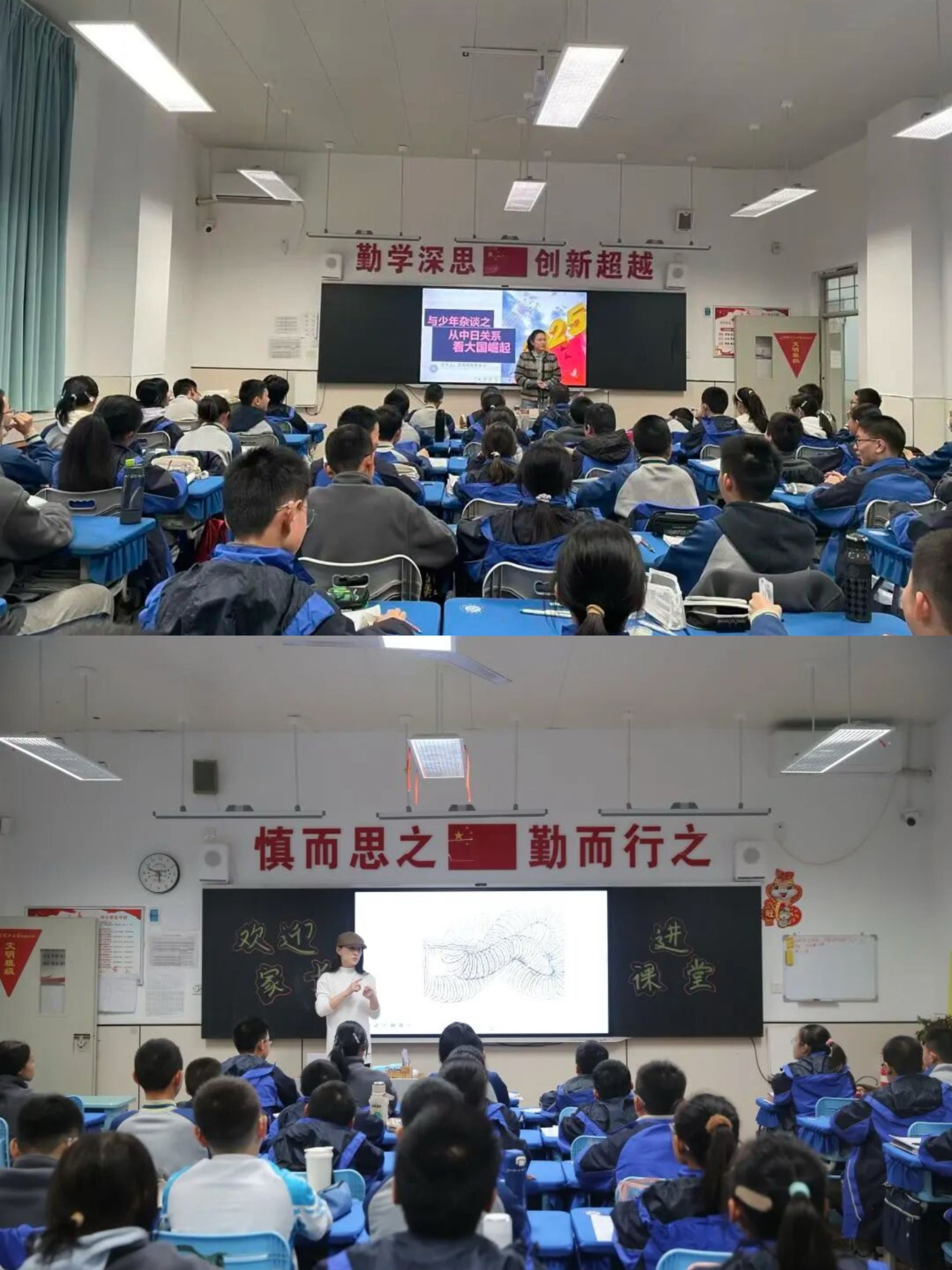 融合文化艺术与家国教育,提升学生审美素养与责任担当。从素描艺术熏陶,到中西方文化差异解读,再到家国情怀分享,家长们带领同学们领略文化之美、感悟家国大义、践行青春担当,让个人成长与国家发展同频共振。