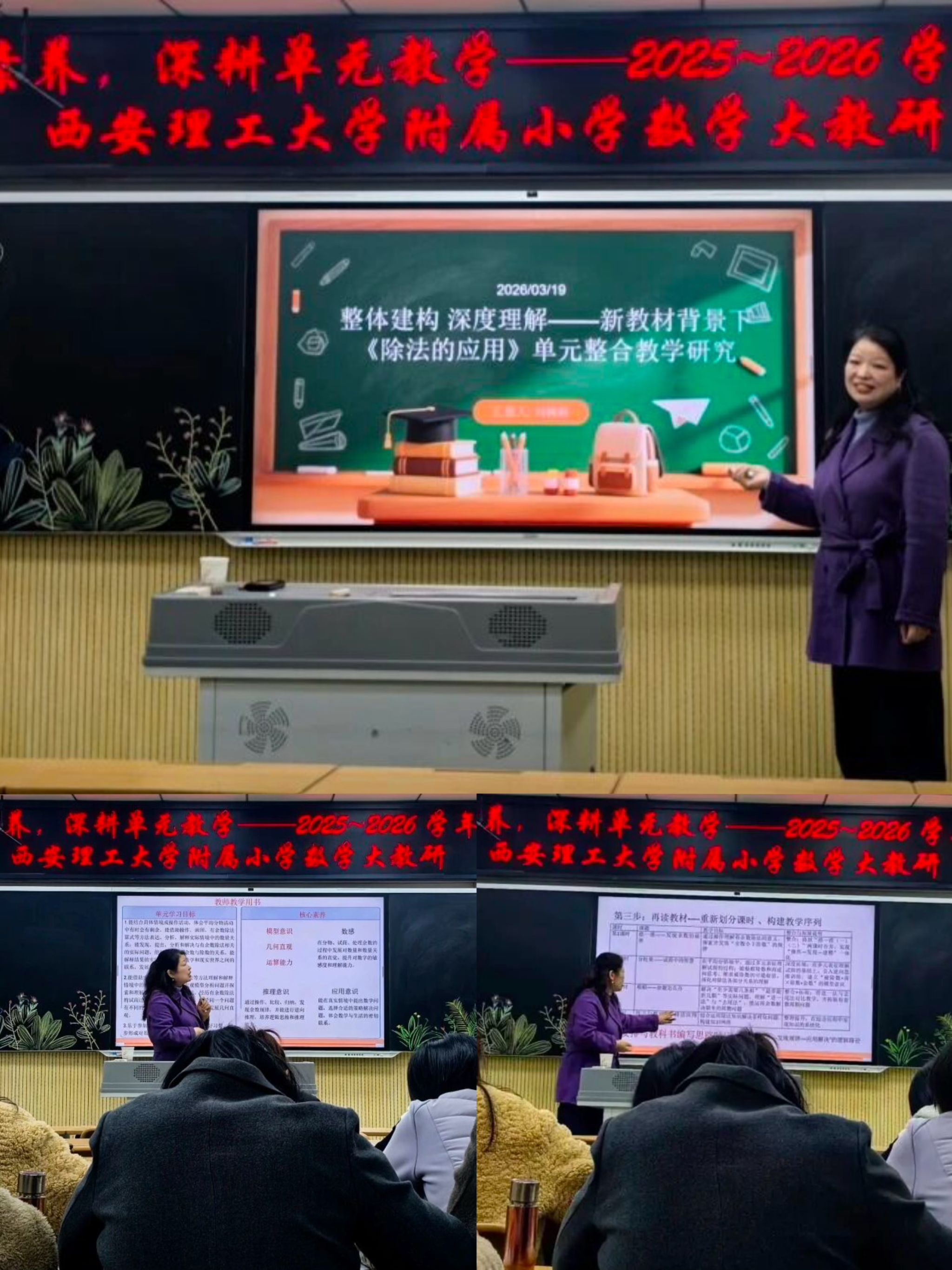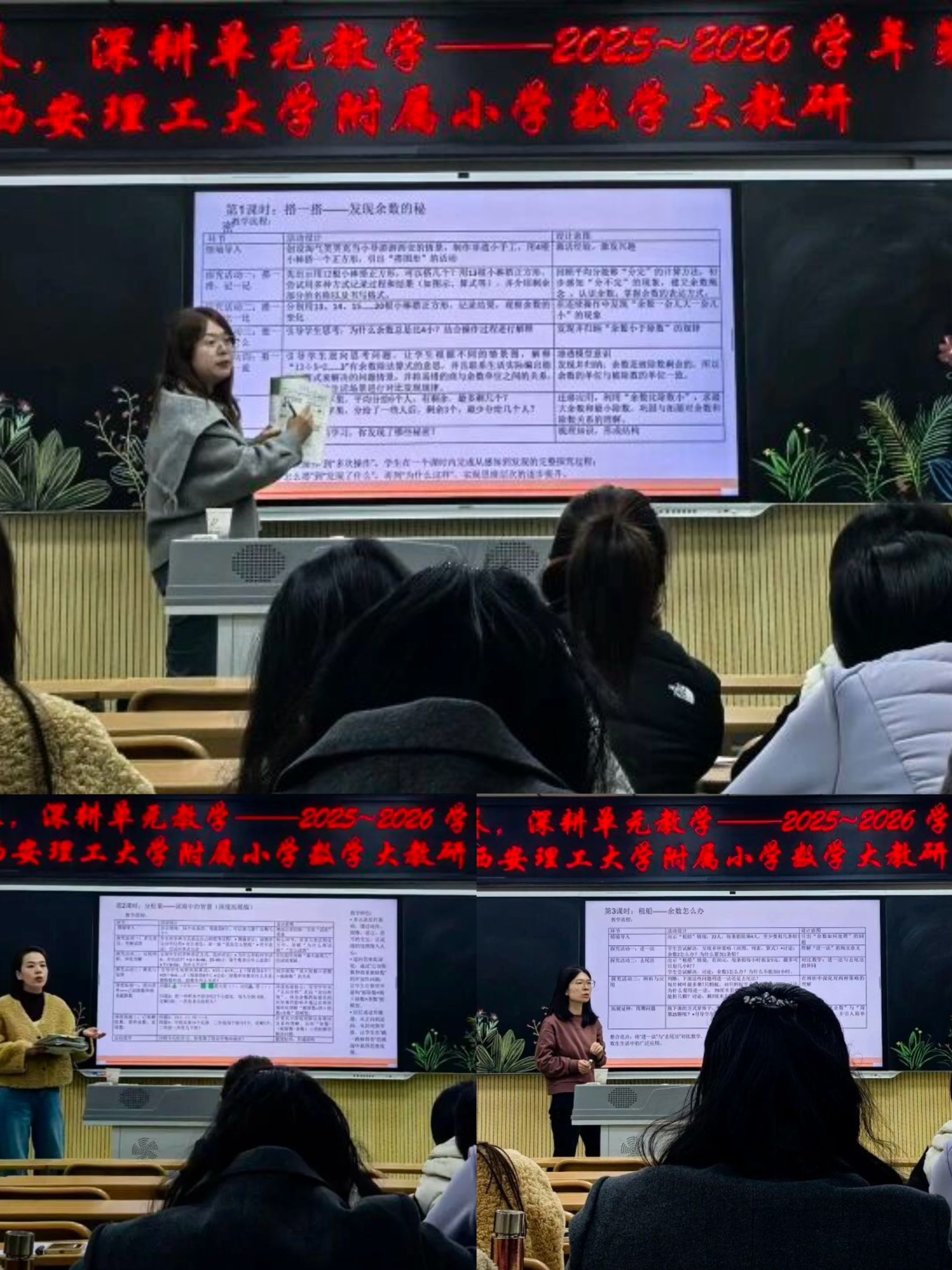 2025-2026学年第二学期,西安理工大学附属小学数学学科第一次大教研圆满结束。此次大教研以北师大版二年级下册“除法的应用”单元为依托,探索单元整体教学的有效实施路径。低数组从承接任务、初选课题、确定内容,到集体备课、组内磨课,历经完整打磨流程,最终形成本次教研主要内容。